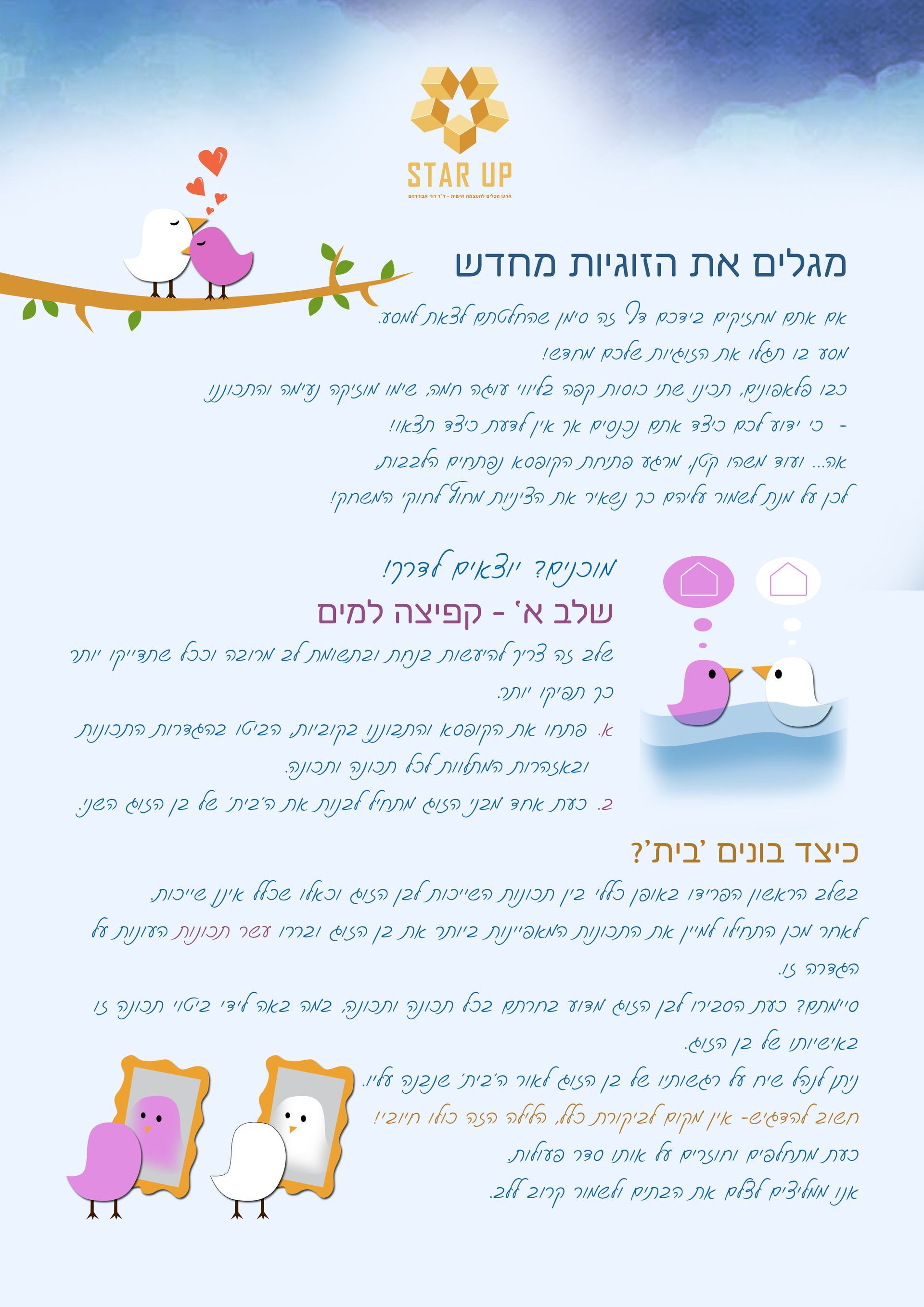 סדנה עוצמתית במיוחד לחיזוק התקשורת וההערכה ההדדית בין בני זוג, מיועדת לקבוצות חברים, יחידות מילואים וקבע בצבא,
